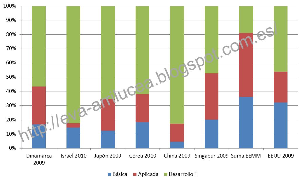 Si cogemos algunos de los países más competitivos a nivel mundial y analizamos la distribución de su gasto en I+D+i, encontramos un interesante equilibrio que se decanta hacia las actividades de desarrollo tecnológico.