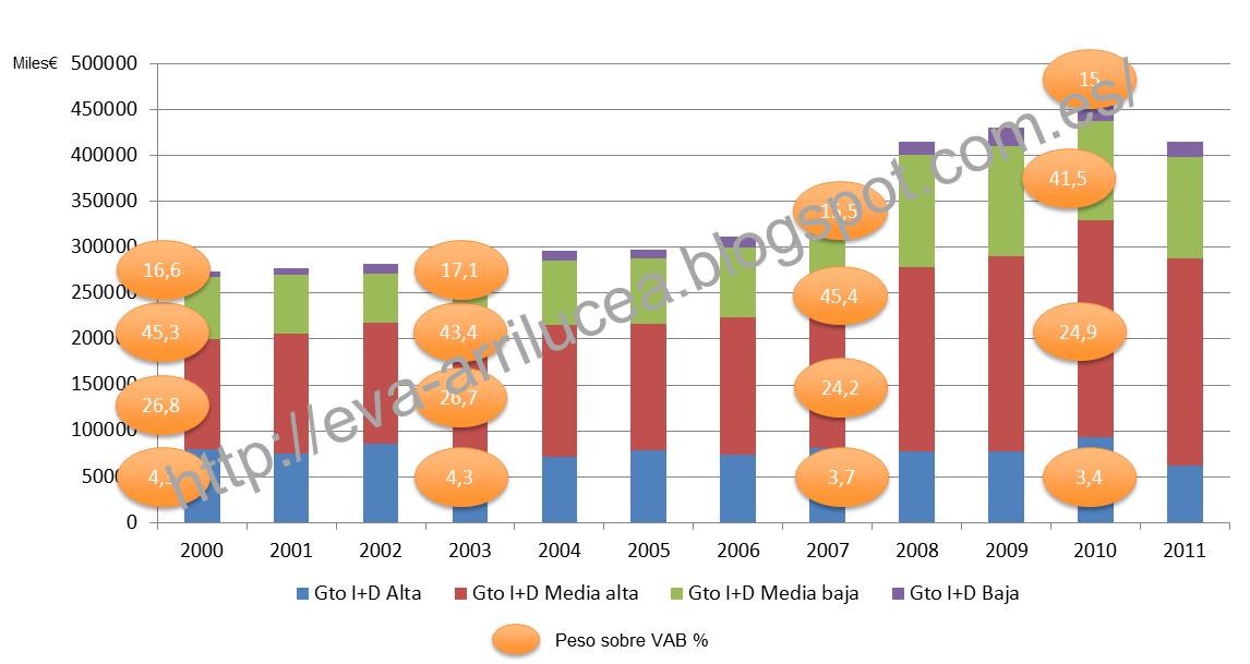 En general sufrimos una descapitalización del valor tecnológico alto en nuestra estructura industrial, tanto en términos de su peso sobre el VAB como en su compromiso de gasto en I+D. Necesitamos apostar por la industria de alto valor añadido y, en general, incrementar  el contenido tecnológico del conjunto: