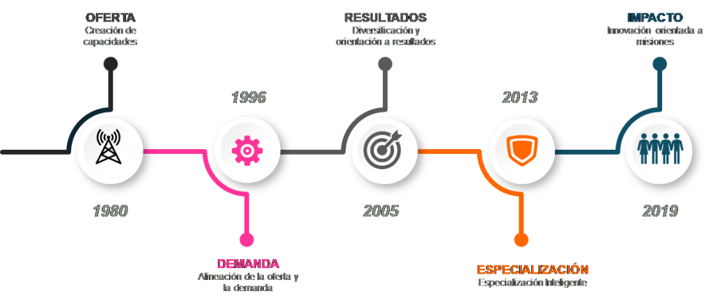 La política vasca de innovación se ha construido sobre décadas de visión compartida. Tras las primeras políticas de oferta que datan de los años 80 y mitad de los 90, en los que se construyeron las bases de la actual Red Vasca de Ciencia, Tecnología e Innovación (RVCTI), llegaron las políticas para sofisticar la unión entre la oferta y la demanda (1997-2005), consolidando la Red y orientándola hacia las necesidades presentes y futuras de las empresas y de la sociedad vasca. A partir de 2005 se puso el acento sobre la necesidad de obtener resultados en base a las principales fortalezas del país, y desde 2013, la especialización inteligente ha guiado la elección de las principales prioridades de innovación. Gracias a todo este trabajo, a la planificación y a la estabilidad en la apuesta por la I+D, el sistema vasco de innovación es un sistema consolidado, maduro, estable y preparado para afrontar los retos del futuro.